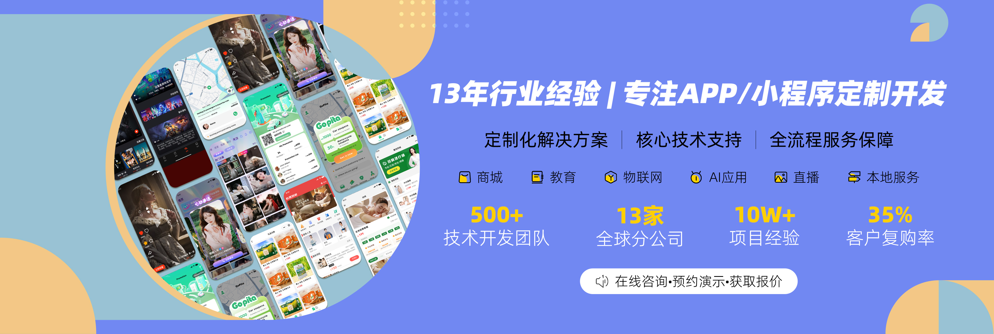13年App定制开发经验,同类型项目每年开发上百个,每年编写程序代码上亿行