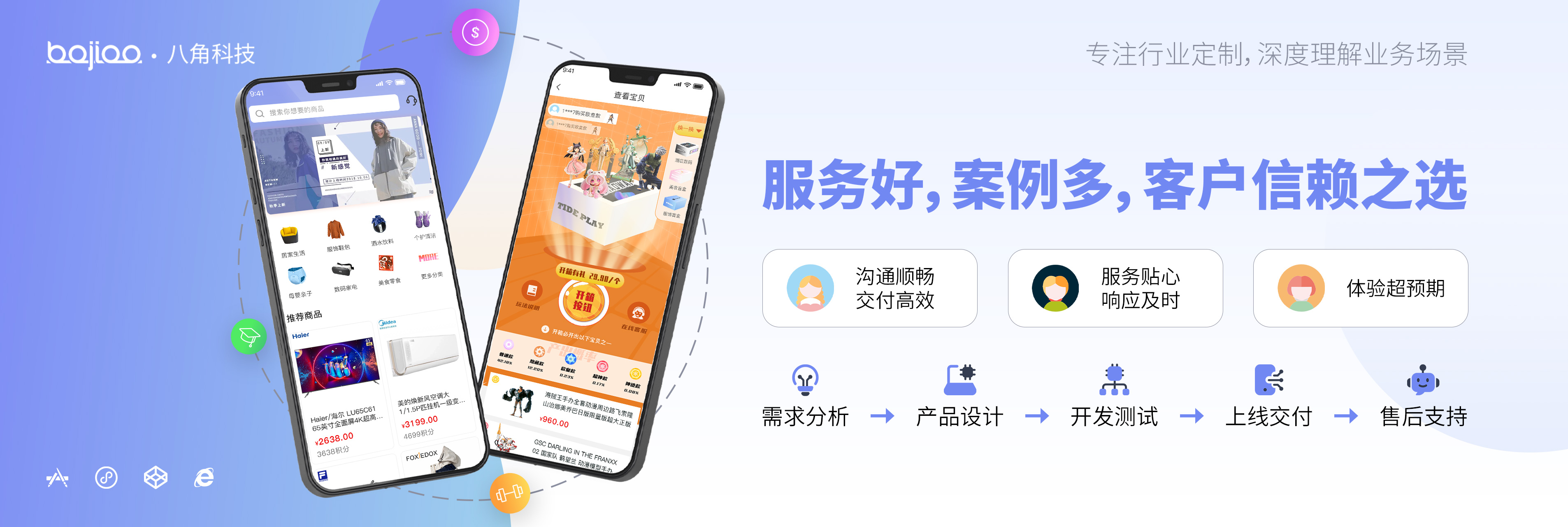 标准化开发流程,周期短,上线快,源码交付,价格透明,绝无二次隐形消费